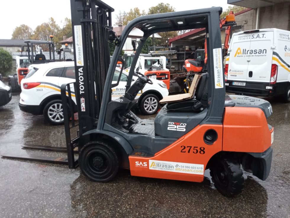 CARRETILLA DE PARKING DIESEL 2,5T | 7.330 h| Carga nominal 2.5 t | Motor Toyota 1DZ | Neum. estándar: SE4 | 42 KW | Centro de gravedad: 500 mm | Peso: 3.65 t | Anchura total: 1150 mm | Altura construcción: 2110 mm | Radio de viraje: 2.28 m | Altura de elevación con carga máx.: 4 m | Velocidad con/sin carga: 19/19,5 km/h | Elevar con/sin carga: 0,62/0,66 | Bajar con/sin carga: 0,5/0,5 | Capac. máx. pend.: 31 %.|*Precio sin IVA
