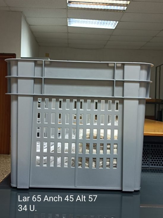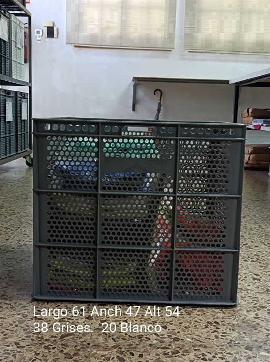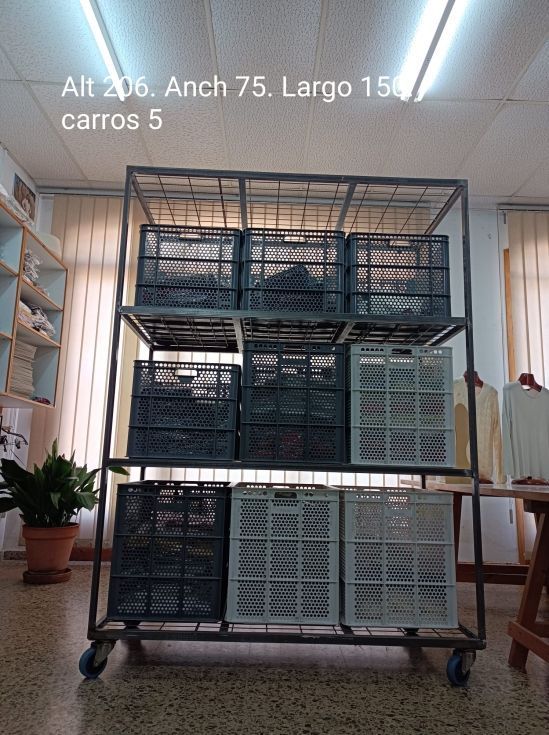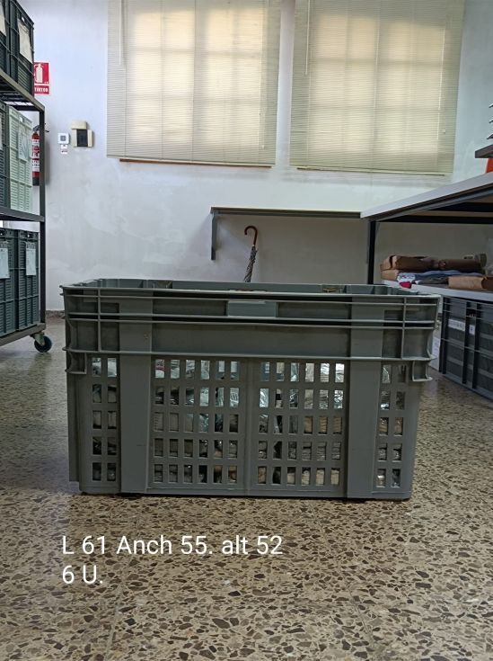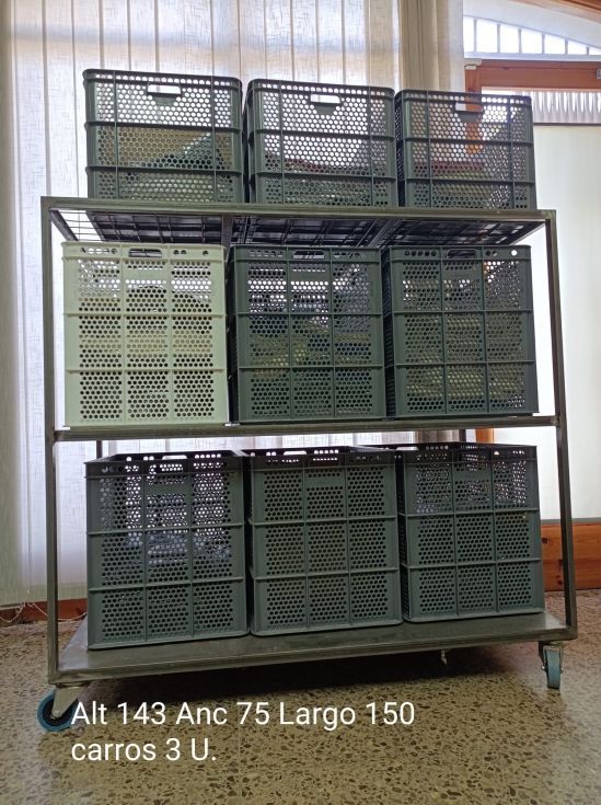 | Detalles | Vendo cajas de plástico apilables y carros con ruedas. 12 carros a 250 EUR unidad. 90 cajas altas a 7 EUR unidad. 57 cajas bajas a 5 EUR unidad. |