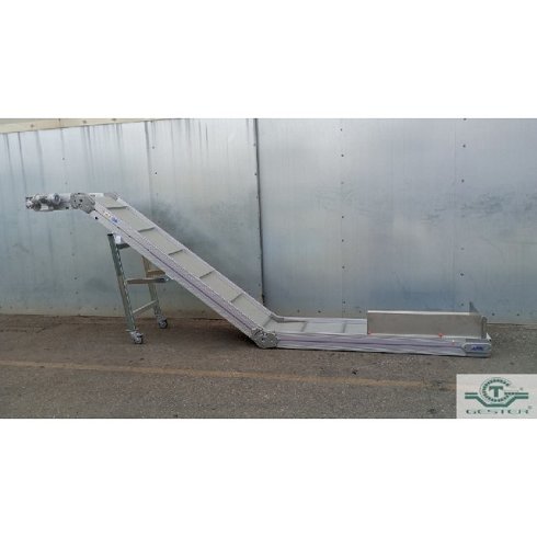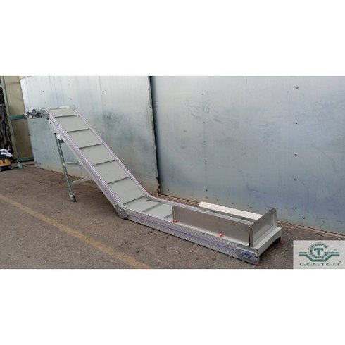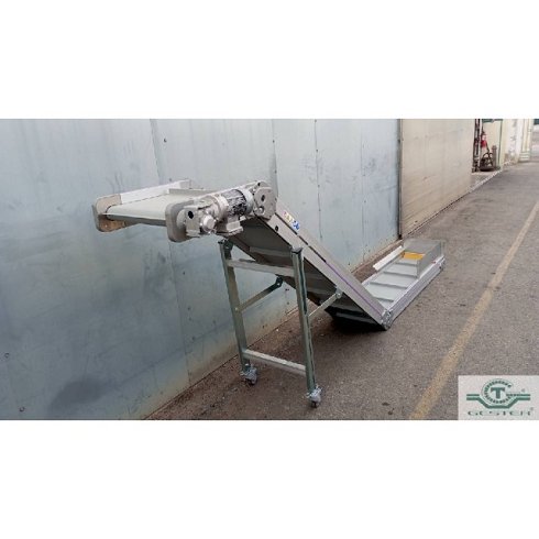 | Detalles | Cinta transportadora Seminueva - Marca: ROMA - Año: 2022 - Tramo recto: 1.85 m x 0.45 - Tramo inclinado: 3 m x 0.45 - Motor reductor: 0.25 CV (0.12 KW) - Con Variador de velocidad - Altura de Descarga 2.05 m |