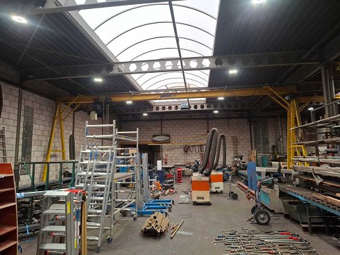 Envergadura aprox. 11,50 metros, altura de elevación: aprox. 420 cm, longitud del raíl: aprox. 22 metros. Equipado con polipasto Abus de 2 toneladas  |