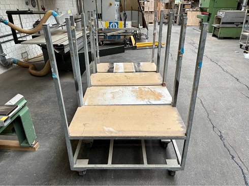 Ruedas 4 piezas, dimensiones de la plataforma aprox. 1000 x 500 mm, altura de almacenamiento aprox. 530 mm (El artículo está en condiciones existentes y sin revisar. ¡Los costos de desmontaje y carga son vinculantes! ¡El artículo se vende sin contenido / material! Las imágenes son solo un ejemplo, la condición y el equipo pueden variar!) |