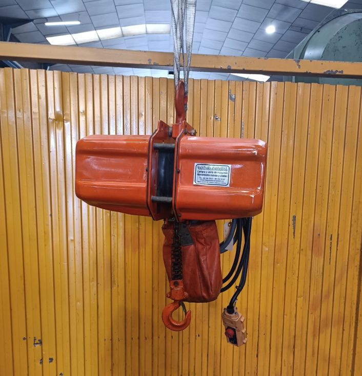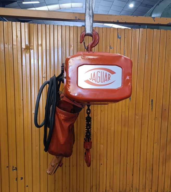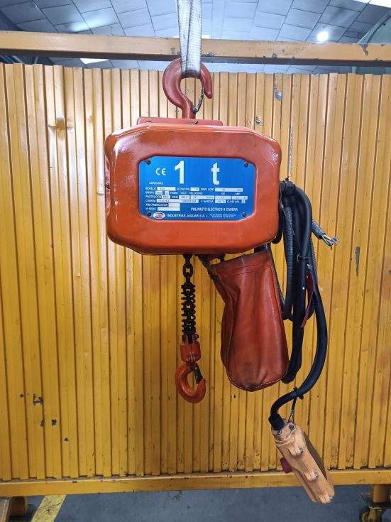 POLIPASTO de cadena JAGUAR, motor: 1 Hp a 380 V, capacidad: 1000 Kg, Año fabricación: 2012. País Origen: ESPAÑA, Accesorios: CARRO A EMPUJE. Peso: 50 Kg aprox.