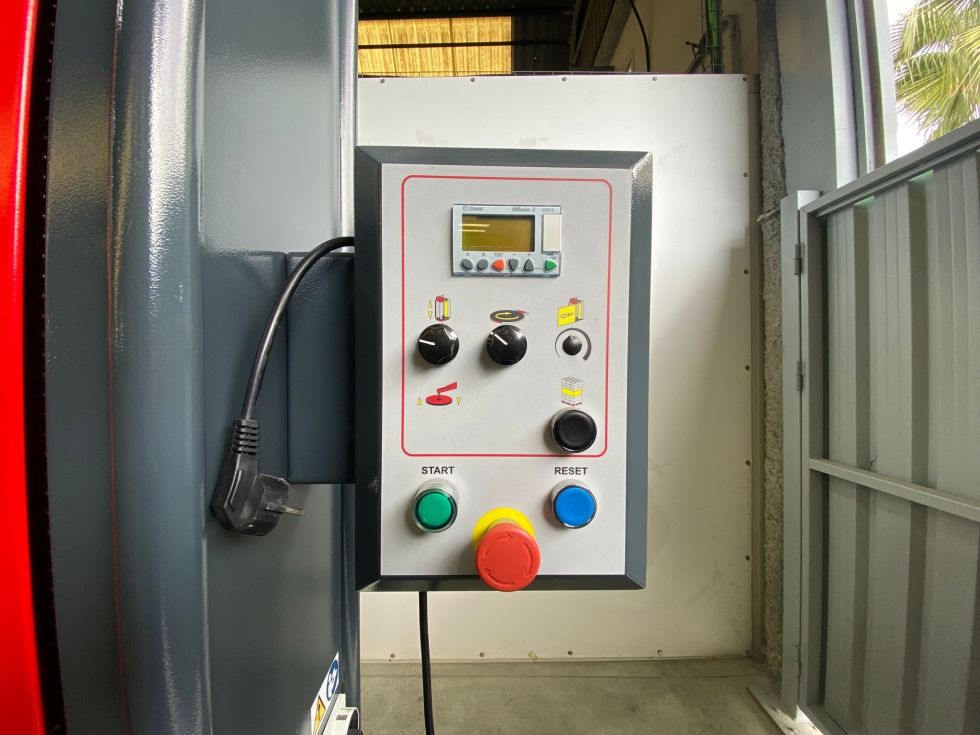 Características: Máquina estándar Perfil EAR-FLAP® Columna abatible. Carro porta bobinas motorizado lateral con variador de velocidad. Freno mecánico ajustable con anti-atrapamiento. Fotocélula para detección automática de la altura de carga. Dimensiones de la plataforma: Ø1.650 mm y 10 mm de grosor. Arranque y parada progresiva con paro en posición y variador de velocidad SCHNEIDER 4. Ciclos de enfardado: Simple / Doble/ Doble-plus / Completo. Contador de ciclos de enfardado. Vueltas de refuerzo superior e inferior de ajuste independiente. Controlada por PLC SIEMENS con pantalla LCD. Refuerzo de cualquier parte de la carga. Panel de mandos ergonómico. Producción variable en función del operario y de las características de la carga.