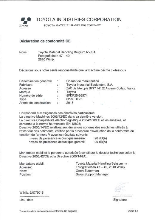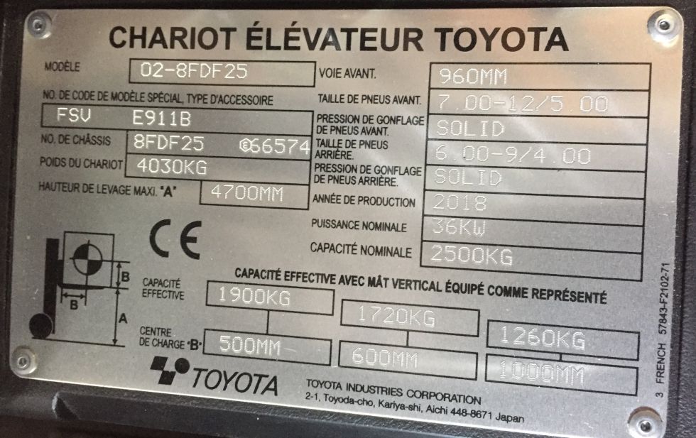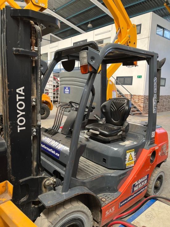 | Detalles | Carretilla Toyota diesel, de la serie 8, mastil triplex a 4.75 m, elevacion libre !!!!. Sistema de seguridad Toyota SAS, sistema de pesaje incorporado y cuarta valvula. Con ruedas antihuella. Fecha de fabricacion 09.07.2018. 2.386 horas. Funcionamiento y estado muy bueno, el motor casi ni se oye !!!