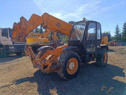 Tipo de máquina: Manipulador telescópico / Telemanipulador Fabricante / Marca: JCB Modelo / Tipo: 532-120 Loadall Año de fabricación: 1999 País de fabricación: Reino Unido Serie / VIN: SLP53200XE0774163 Potencia del motor: 51 kW @ 2200 rpm Motor: Motor diésel (tipo JCB / Perkins) Peso operativo: 9.060 kg Capacidad máxima de levantamiento: 3.200 kg Altura máxima de levantamiento: 12,0 m Sistema de transmisión: tracción 4x4 Transmisión: Cambio de marcha de potencia, 4 marchas delante / 4 marcha atrás Modos de dirección: 2WS / 4WS / Crab steer Neumáticos: Banda de rodadura industrial, estado desgastado Hidráulica: - Brazo telescópico con extensión hidráulica - Línea hidráulica auxiliar para acoplamientos - Patas estabilizadoras montadas en la parte delantera Cabina: - Cabina cerrada con calefactor y palancas de control - Panel de instrumentos analógico con horómetro - Lectura del horímetro: 10.590 horas (Cuarzo Veethree) Estado / Observaciones: Máquina en