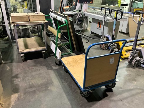 Compuesto por un invernadero de plantas Wanzi, dimensiones 1650x700 mm con contenido, + tranvía de almacén Fetra dimensiones 1100x600x1000 mm + 1x dimensiones de carro de almacén 1350x800x950 mm con 2x funda de clavos