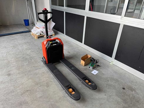 Capacidad nominal 1300 kg, altura de elevación 195 mm, capacidad máxima de la batería: 36 Ah, voltaje 24 V, velocidad máxima 4,8 km/h, longitud de la horquilla 1150 mm, ancho de la horquilla 540 mm, certificado CE presente Artículo vendido como nuevo Artículos no sujetos a restricciones de venta