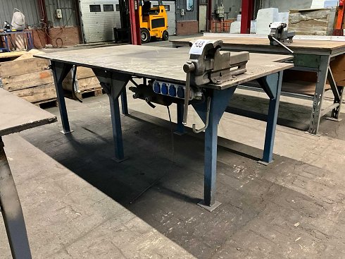 base de acero perfilada; encimera de acero para la mesa; espesor de acero sobre la mesa de 20 mm; tamaño de la mesa 2350x1250 mm; altura de la mesa 900 mm; equipado con una mordaza de prensa Heuer de 150 mm de ancho de mandíbula; equipado con conexión de distribución de aire; Conexión eléctrica. |