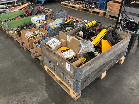 3 palets con accesorios para grúas aéreas; mandos a distancia; sensores; |