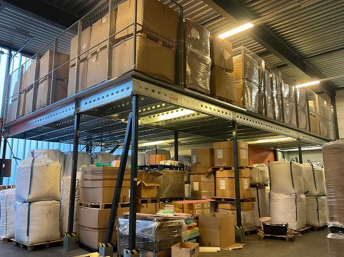 Consta de 2 esquinas: 1 dimension de esquina aprox. 270x730 cm y dimensiones de esquina aprox. 870x760 cm Ancho de escaleras aproximadamente 95 cm, compuesto por 19 peldaños Equipado con jaula de seguridad Troax a una altura superior de aproximadamente 220 cm, equipado con plataforma de carga Equipado con iluminación y enchufes Carga máxima: 600kg/m2 Así como diversas protecciones contra colisiones |