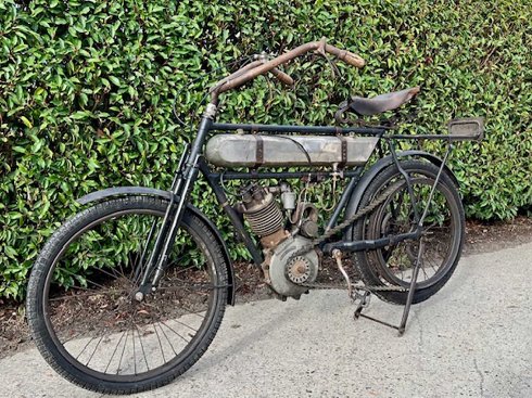La velocidad máxima de estas motocicletas rondaba los 100-115 km/h. Solo se conocen unos 6 de este corredor. En 1930, Magnat Debon fue adquirida por Terrot y el nombre se mantuvo, pero los modelos eran casi idénticos a los de Terrot. Este Magnat Debon 500cc de carreras OHV es uno de los primeros coches de 1912 poco habitual. La primera versión con el tanque plano pequeño, en 1913 llegó el tanque redondo más grande. La moto está completa y el motor está flojo y con compresión. De serie venían con esta versión de calle, manillar y portaequipajes, ya que muchas carreras callejeras en Francia tenían que competir con una motocicleta de calle normal. Pero muchos fueron convertidos con una rueda de carreras. Esta motocicleta también tiene un escape especial de competición con válvula extra que se puede abrir. |