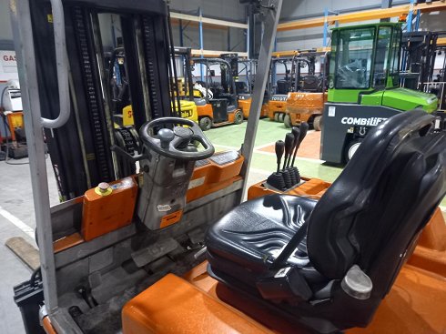 Carretilla elevadora eléctrica BT TRUCK CBE AC350. Altura de elevación 5,3 metros. Capacidad de carga 3500 Kg. Año de fabricación 2005.