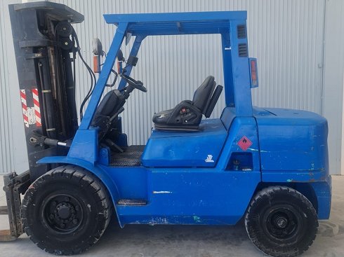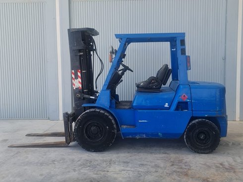 Carretilla elevadora diésel MITSUBISHI FD45K2. Altura de elevación 4,75 metros y capacidad de carga de 4500 Kg. Año de fabricación 2006.