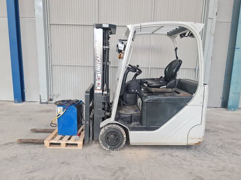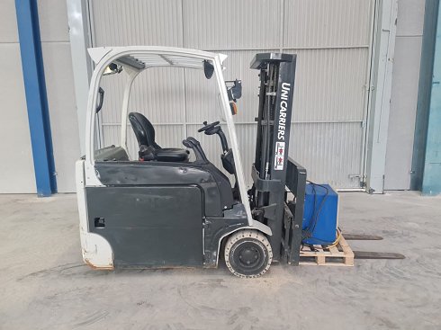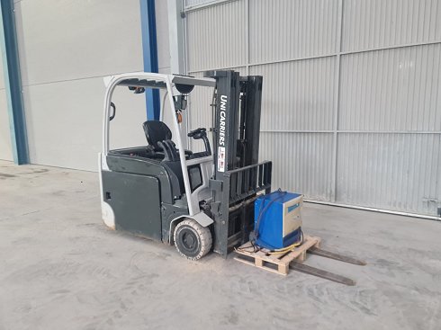 | Detalles | Carretilla elevadora eléctrica triciclo UNICARRIERS A2N1L16Q. Altura de elevación 4,3 metros y capacidad de carga 1600 Kg. Año de fabricación 2017. Caracteristicas