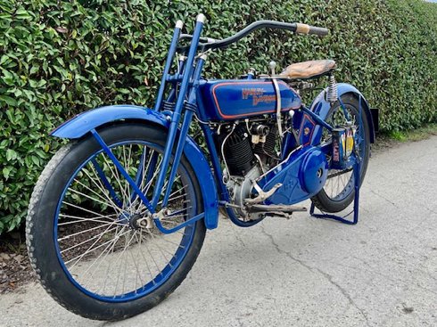 Harley restaurado modelo 1918. Esta es una motocicleta exmilitar de la Primera Guerra Mundial, mira las marcas de EE.UU. en la silla y el bloque. La moto fue restaurada hace unos años y ha recorrido el Tour de Provenza dos veces sin ningún problema. |