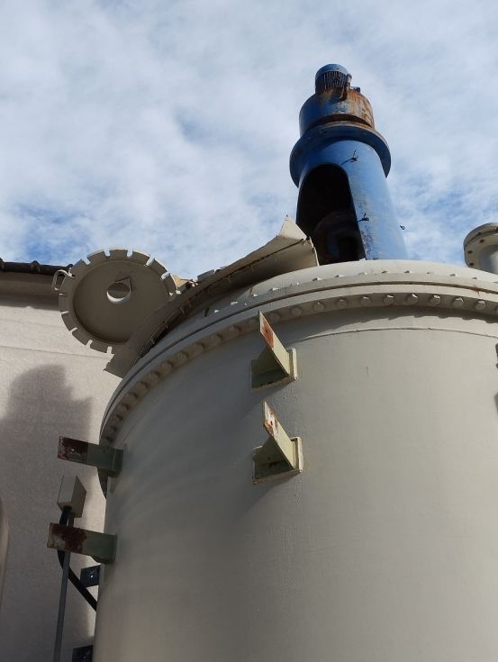 | Detalles | Dos depósitos de 25.000 litros en Inox-316TI forrados en acero al carbono. Fondo superior e inferior klopper. Fondo superior con brida para agitación (la agitación que dispone está inservible), boca de hombre y 9 tubuladuras DN150. Fondo inferior con salida centrada y válvula de accionamiento manual. Sobre cuatro patas. Precio económico a convenir. |
