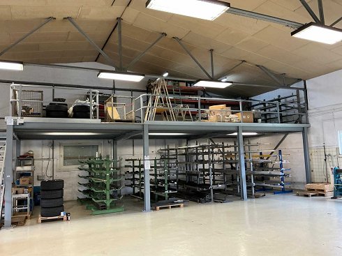 Dimensiones sin escaleras: 1270 cm x 500 cm; soporte 10x, altura 16x15 cm, 304 cm; 2 vigas principales 27x13,5cm, longitud 435cm; 2 vigas principales 22x11 cm de longitud 435 cm; 15 vigas secundarias 14x7,5 cm 10x longitud 412 cm 5x longitud 371 cm; 6 vigas laterales de 18x9 cm 4x largo 420 cm 2x largo 379 cm; con barandilla de 110 cm de altura y escaleras de acero. El comprador es responsable del desmantelamiento él mismo. |