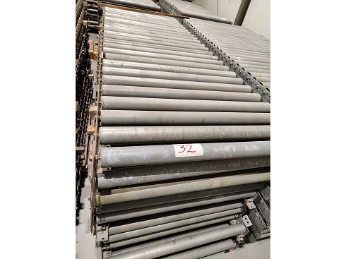 longitud total - 26 000 mm, para transportar palés, cartones, cajas, etc., o para construir estantes de flujo, longitud de un segmento - 2600 mm, ancho del rodillo - 855 mm, paquete de 10 piezas