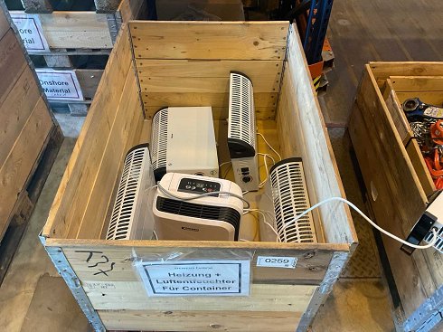 La cocina consta de 5 calentadores eléctricos Tristar y 1 deshumidificador de Komerci |
