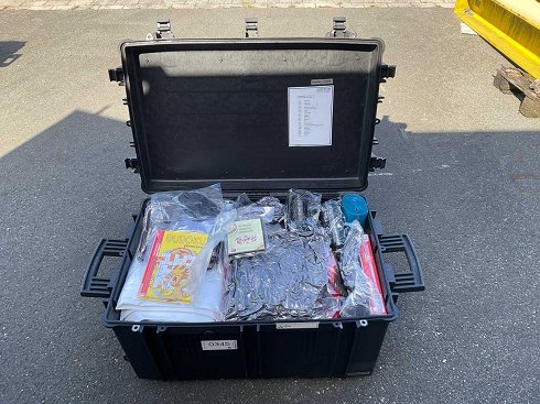 Estuche móvil impermeable y multifuncional a prueba de polvo, incluyendo el contenido |
