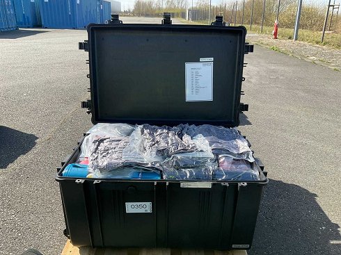 Estuche móvil impermeable y multifuncional a prueba de polvo, incluyendo el contenido |