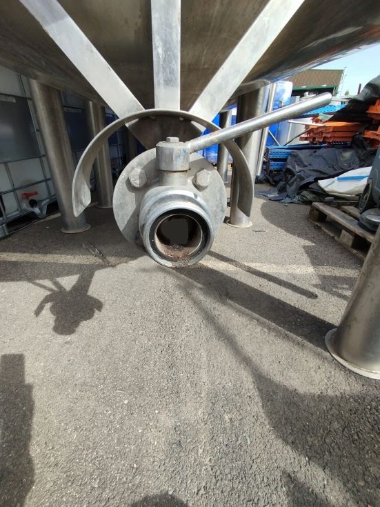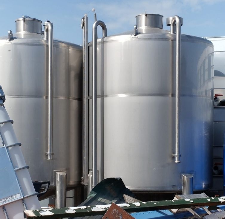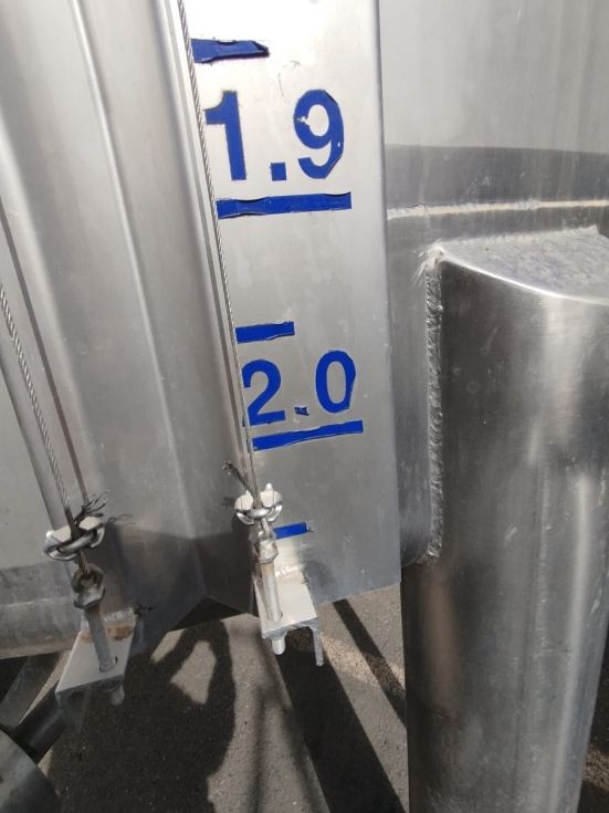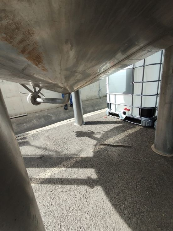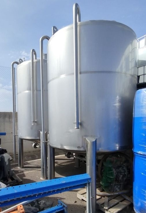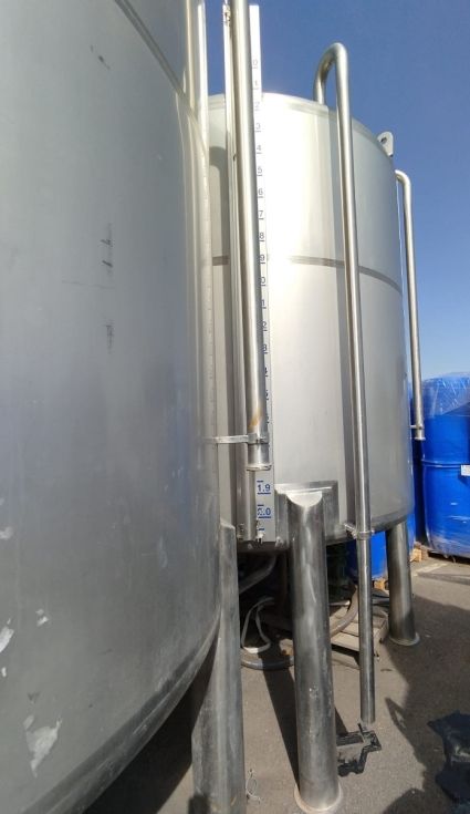 | Detalles | Depósito de 2000 litros en inoxidable. Boca de hombre en el fondo superior, dos orejas para elevación, tubuladura de carga y seta de venteo. Fondo inferior cónico con salida centrada y válvula de bola manual. Nivel exterior. Sobre 4 patas. 2 unidades disponibles. |