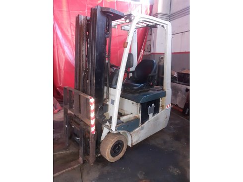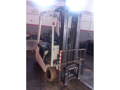 Carretilla elevadora eléctrica triciclo UNICARRIERS A1N1L18Q. Altura de elevación 4,75 metros y capacidad de carga 1800 Kg. Año de fabricación 2015.