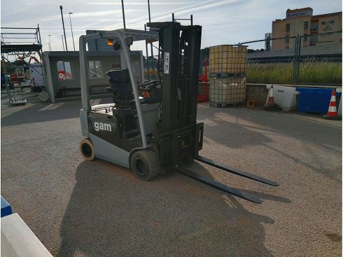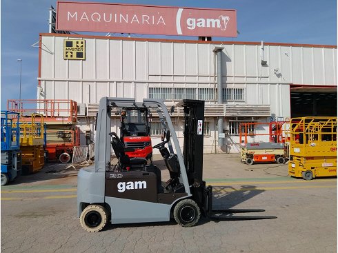 | Details | Carretilla elevadora eléctrica UNICARRIERS JAG1N1L20Q. Altura de elevación 4,75 metros y capacidad de carga 2000 Kg. Año de fabricación 2016. Caracteristicas