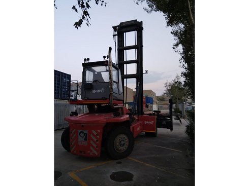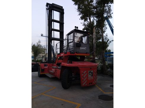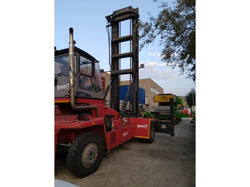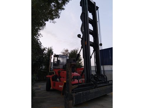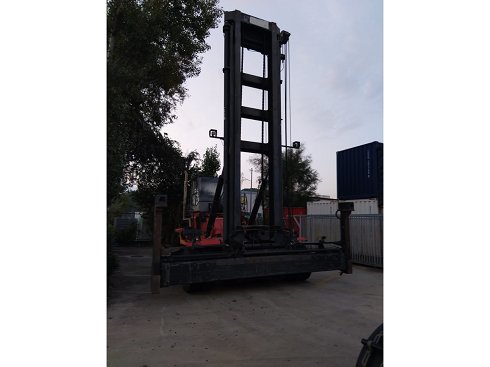 Carretilla portacontenedores KALMAR DCF80-45E5. Altura de elevación 15 metros y capacidad de carga de 8000 Kg. Año de fabricación 2016.