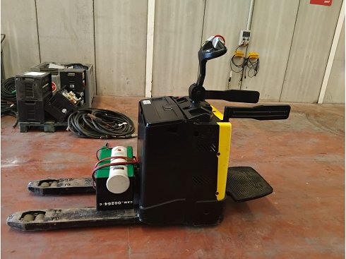 | Details | Transpaleta eléctrica conductor montado HYSTER P2.0S FBW. Capacidad de carga 2000 Kg. Año de fabricación 2018. Caracteristicas