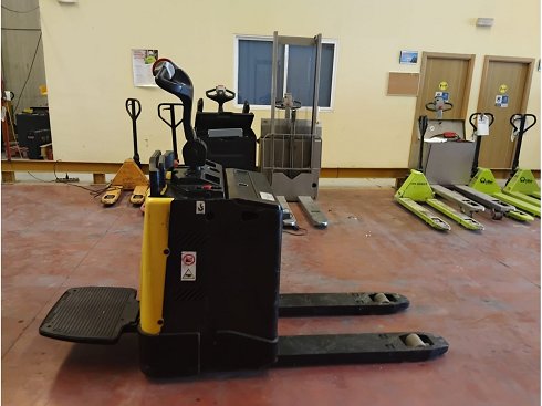| Details | Transpaleta eléctrica conductor montado HYSTER P2.0S FBW. Capacidad de carga 2000 Kg. Año de fabricación 2018. Caracteristicas