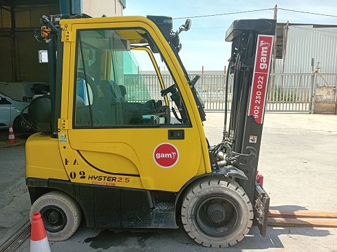 | Details | Carretilla elevadora GLP Hyster H2.5FT. Altura de elevación 3,2 metros y capacidad de carga de 2500 Kg. Año de fabricación 2019. Caracteristicas