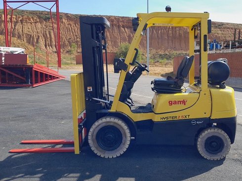 | Details | Carretilla elevadora GLP Hyster H2.5XT. Altura de elevación 4,9 metros y capacidad de carga de 2500 Kg. Año de fabricación 2019. Caracteristicas