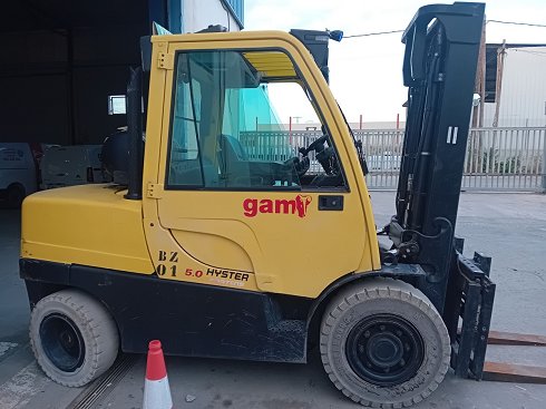 | Details | Carretilla elevadora GLP Hyster H5.0FT. Altura de elevación 3,4 metros y capacidad de carga de 5000 Kg. Año de fabricación 2012. Caracteristicas