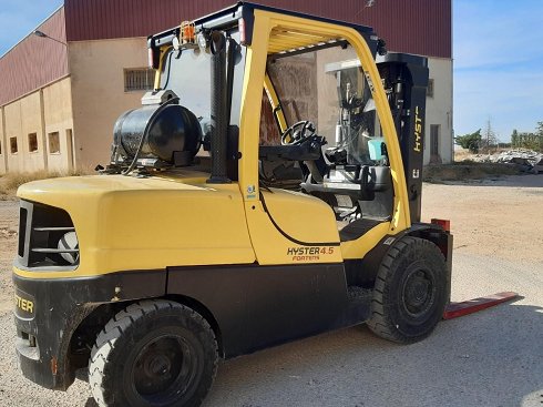 | Details | Carretilla elevadora GLP HYSTER H4.5FT6. Altura de elevación 4,15 metros y capacidad de carga 4330 Kg. Año de fabricación 2020. Caracteristicas
