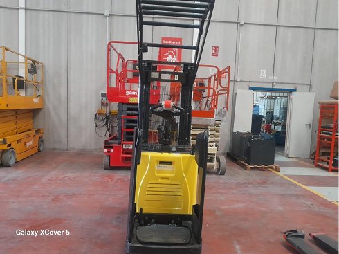| Details | Apilador doble eléctrico montado HYSTER P2.0SD. Altura de elevación 3 metros y capacidad de carga 2000 Kg. Año de fabricación 2021. Caracteristicas