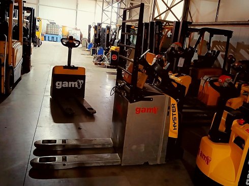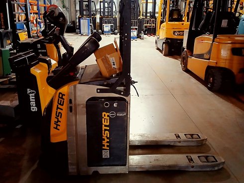 | Details | Transpaleta eléctrica conductor montado HYSTER P2.5S. Capacidad de carga 2500 Kg. Año de fabricación 2022. Caracteristicas