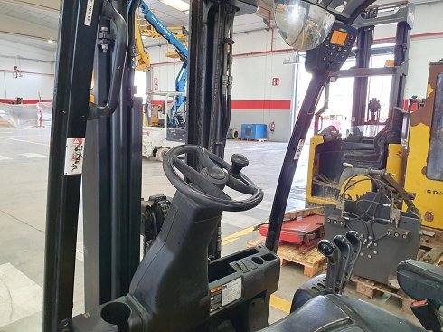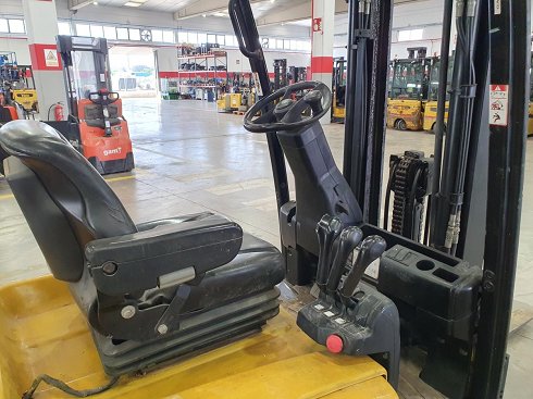 Carretilla elevadora eléctrica triciclo YALE ERP16VT MWB. Altura de elevación 3,2 metros y capacidad de carga 1600 Kg. Año de fabricación 2015.