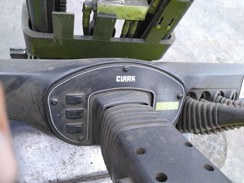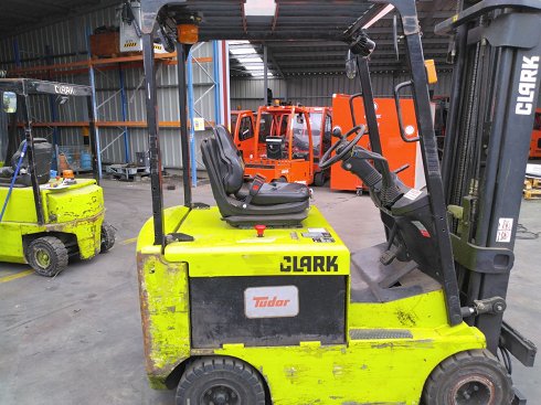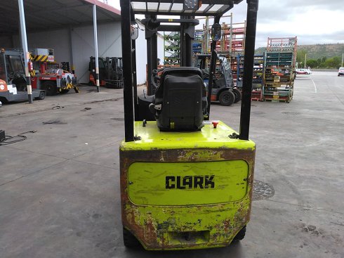 Carretilla elevadora eléctrica CLARK EPG18. Altura de elevación 5,5 metros. Capacidad de carga 1800 Kg. Año de fabricación 2003.