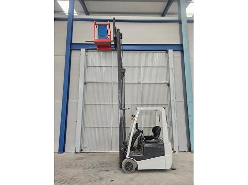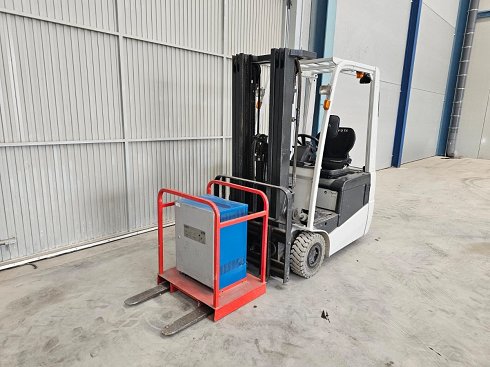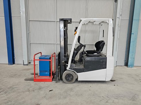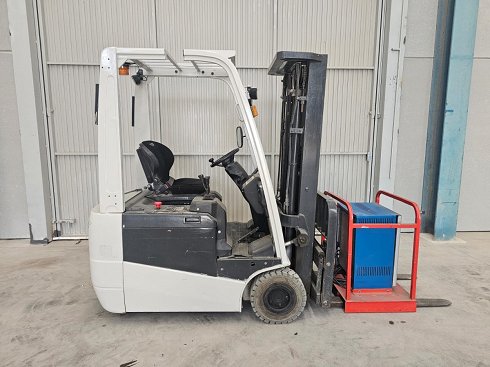 Carretilla elevadora eléctrica triciclo UNICARRIERS A1N1L18Q. Altura de elevación 4,75 metros y capacidad de carga 1800 Kg. Año de fabricación 2015.