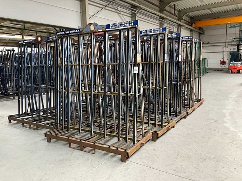 Bastidor de transporte de acero / puente (doble cara), equipado con perfiles de protección de goma, ojo de elevación, agujeros para la cuchara de la carretilla elevadora, con contenido |