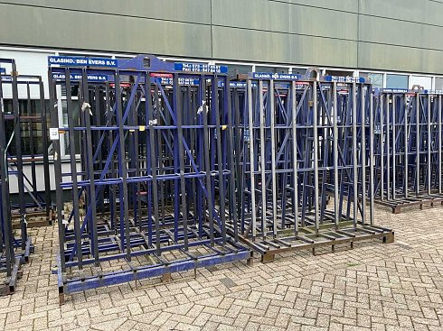 Bastidor de transporte de acero / puente (doble cara), equipado con perfiles de protección de goma, ojo de elevación, agujeros para la cuchara de la carretilla elevadora, con contenido