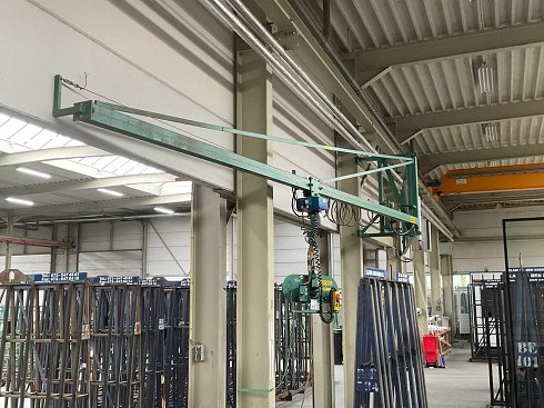 Equipado con: (1x) polipasto eléctrico de cadena Abus, (1x) elevador de vacío Muyen / placa de succión, 250kg. Año de fabricación: 1999.