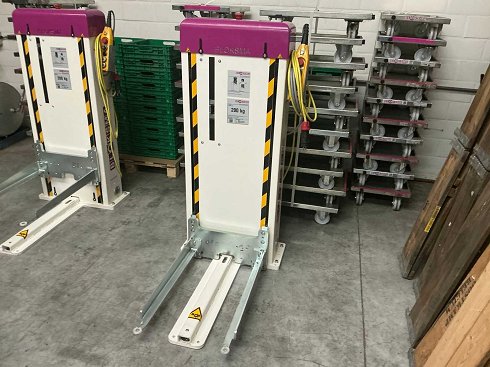 Altura de elevación: 850 mm; Incluye: 20 dollies a juego con una capacidad de 150 kg, dimensiones: 600x400x160mm Número de artículo: Z201357; incluyendo 20 cestas de plástico apilables. Tamaño: 445x380mm |