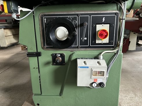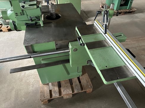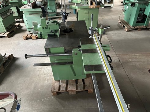 | Detalles | Technical characteristics Shaft length : 250 mmMax tool diameter : 200 mmShaft diameter : 50 mmManual shaft raising/loweringTable length : 1100 mmTable width : 720 mmMotor power : 5,5 kW (7,5 HP)4 rotation speed : 3000, 5000, 6000 and 8000 RPMTenoning carriage sliding on the widthCarriage dimensions : 750 x 300 mmExtendable stop adjustment2 x 120 mm diameter suction ports on protectorIdeal for small production Power and Motors Voltage: 380 VPluging: Three-phasedPower: 6 Kw Overall dimensions Lenght: 1100 mmWidth: 720 mm |