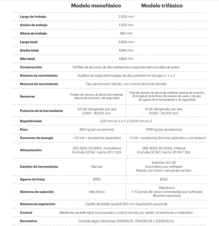 | Detalles | Fresadora CNC Fox Pro trifásica. Area de trabajo: 2500*1300*250. Año: 2.022. En muy buen estado, solo un uso de 80 horas aprox. Al día de mantenimiento técnico con la casa. Precio: 15.000 euros innegociable. Máquina con accesorios (bomba de succión, aspirador, fresas y cabezales varios...). Fox Pro es una fresadora de tres ejes para el mecanizado de diferentes materiales: madera y derivados, plásticos, espumas técnicas, composites y metales no ferrosos. La superficie útil de trabajo es de 1300 x 2500 x 250 mm y se presenta en dos formatos con diferentes potencias y funcionalidades. La máquina ofrece una excelente calidad y prestaciones técnicamente óptimas atendiendo a la relación precio-rendimiento. Las mejoras continuas e innovaciones en los productos de Nomad Technologies garantizan productos de vanguardia tecnológica. |