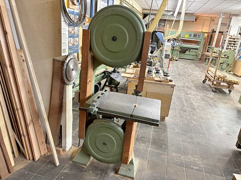 Máquina nº 2376, motor aprox. 2,2 KW, diámetro del rodillo aprox. 600 mm, guía superior de la hoja de la sierra (El artículo está en condiciones tal como existente y sin revisar. Los costes de desmontaje y carga son vinculantes y el artículo se vende sin contenido ni material). |