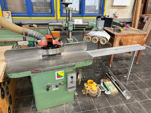 PD, máquina nº 3089, motor aprox. 6/8, velocidad aprox. 6 piezas, longitud de mesa aprox. 1100 mm, husillo rígido y diámetro aprox. 30 mm, alimentación de 3 rodillos, extensión de mesa Aigner de 1 pieza (El artículo está en condición actual y sin probar. Los costes de desmontaje y carga son vinculantes y el artículo se vende sin contenido ni material). |