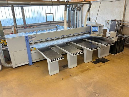 Máquina nº 0-240-06-9119, longitud de corte aprox. 4300 mm, profundidad de corte aprox. 4300 mm, protuberancia de la hoja de la sierra aprox. 125 mm, motor principal aprox. 18 KW, hoja principal aprox. 450 mm, motor de sierra de rayado aprox. 2,2 KW, hoja de sierra de marcado aprox. 180 mm, corredera programada con 7 escotas, control automático de altura de la viga de presión, altura automática de corte, impresora de etiquetas Pica 108, CadMatic 4 con pantalla táctil, luz direccional láser, paquete de corte en ángulo, paquete de corte por ranura, mesas con cojín de aire 4 piezas, topes de corte (El artículo está en el mismo estado que Disponible y sin probar. ¡Los costes de desmontaje y carga son comprometedores! ¡El artículo se vende sin contenido ni material!)