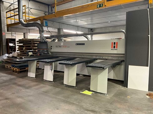 Controlada por PLC, longitud máxima de trabajo 400 cm, mesa de alimentación con amortiguador de aire, parada automática, campás extractoras de polvo, impresora, panel de control, valla de seguridad, extracción hasta flexible incluida